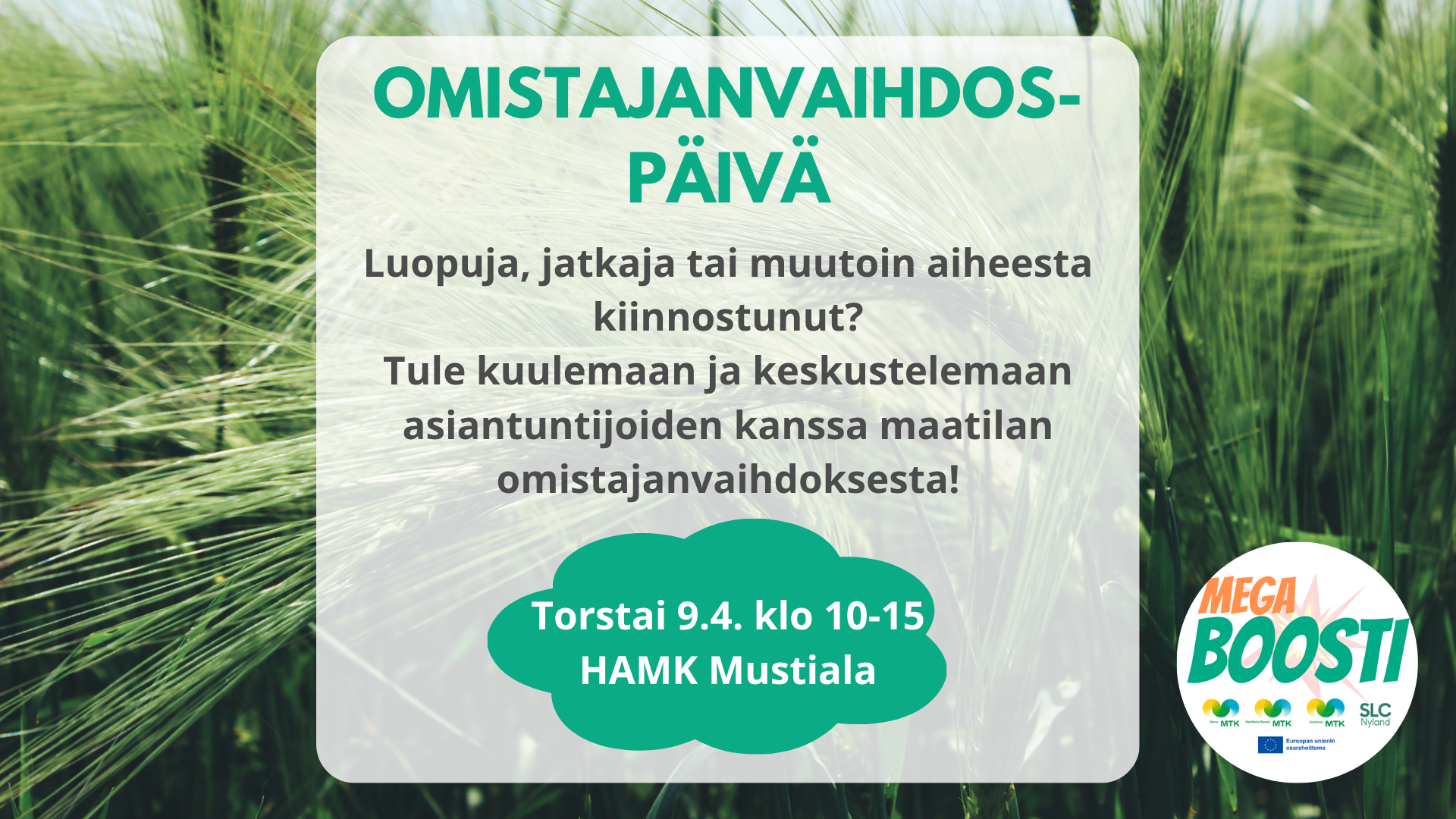 Omistajanvaihdospäivä – tietoa, tukea ja kohtaamisia maatilan omistajanvaihdokseen / MegaBoosti